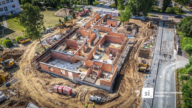 Trwa budowa nowego żłobka przy ulicy Pszczelnej w Szczecinie. Powstaje tu 12-oddziałowa placówka. W budynku będzie m.in. sala sensoryczna, a na zewnątrz - dwa place zabaw, na dachu zaś bezpieczny zielony taras zabaw. Zakończono już kluczowe roboty ziemne i fundamentowe, trwa wznoszenie ścian obiektu.
