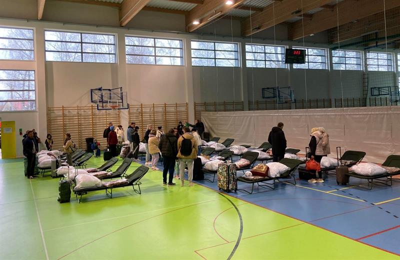 Punkt przyjmowania Ukraińców zorganizowano w hali sportowej przy ul. Norwida. Przybywający wypełniają tu dokumenty potrzebne do legalizacji pobytu, w tym wniosek o PESEL, podstawowe informacje o mieście i regionie, mogą zgłosić swoje potrzeby, otrzymać informację o możliwości zatrudnienia, a osoby niemające gdzie się zatrzymać - dostają tymczasowe zakwaterowanie i wyżywienie. Punkt obsługuje również uchodźców, którzy zatrzymali się w okolicznych gminach; przyjeżdżają, bo załatwianie formalności w Goleniowie idzie sprawnie.