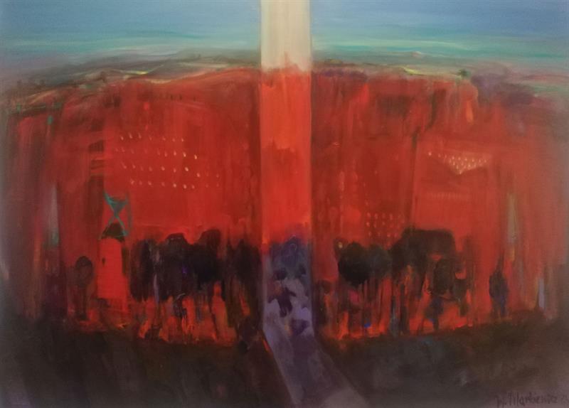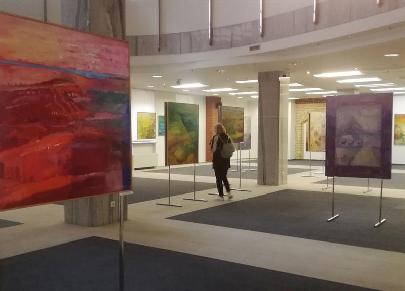 W Sali pod Piramidą Książnicy Pomorskiej około sześćdziesięciu swoich obrazów, w tym najnowsze pejzaże, prezentuje Wiesława Markiewicz. Mają duże formaty, a rozwieszone w rozległej galerii tworzą labirynt przejść. Można między nimi spacerować, oglądać z bliska, wybierać drogi, odkrywać współbrzmienia i kontrasty. Są tam kompozycje pojedyncze, dyptyki i tryptyki, a także złożona z czterech płócien kwietna opowieść „Wszystko o nasturcji". Dominują krajobrazy, na ogół skrywające szczegóły. Najwyraźniejsze są ptaki,