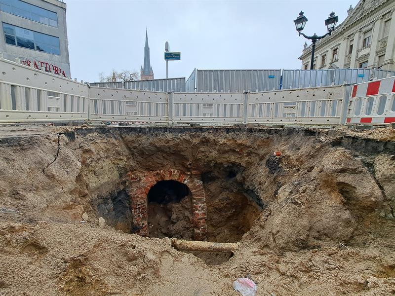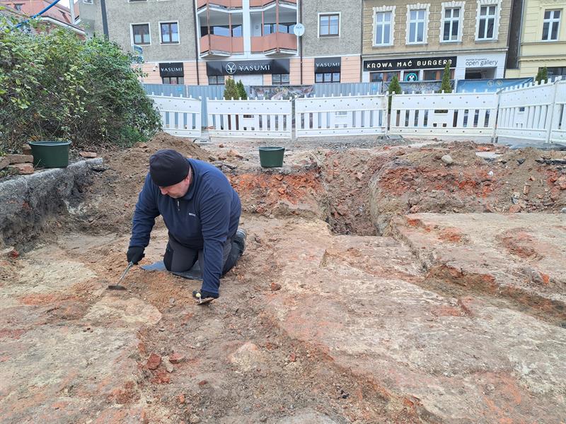 - Drewniane rury ułożone bezpośrednio w ziemi najprawdopodobniej odprowadzały wodę z fontanny, która znajdowała się w pobliżu dzisiejszej restauracji Trattoria Toscana - informuje Przemysław Kołosowski. - Ta sama fontanna później została przeniesiona w obecne miejsce w centralnej części placu. Rury o podobnej funkcji biegły także wewnątrz obszernego ceglanego kanału, który odkryliśmy wcześniej. Niedawno wykonaliśmy dwa wykopy, w których natrafiliśmy na dwie odnogi tego kanału. Jedna prowadzi do budynku znajdującego się na rogu ulic Koński Kierat i Staromłyńskiej (budynek jest nowy, ale przed wojną również stały w tym miejscu kamienice). Druga nitka prowadzi w rejon restauracji i tam się kończy. Kanał