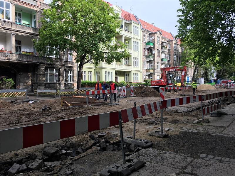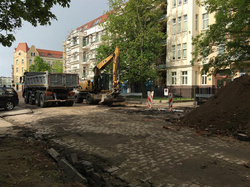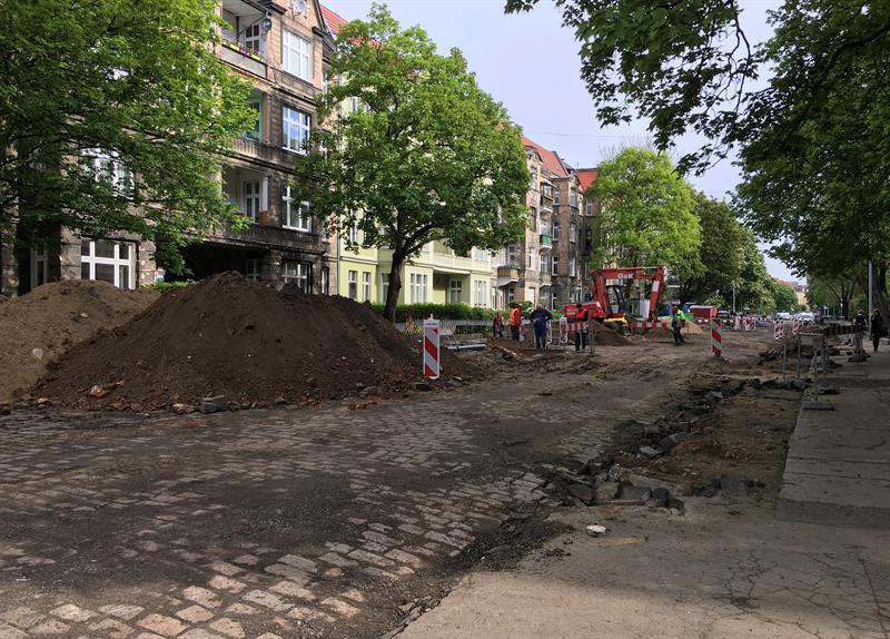 Mija czwarty tydzień prac drogowych na zamkniętym dla ruchu kołowego odcinku ul. Bolesława Śmiałego między skrzyżowaniem z ul. Bolesława Krzywoustego i pl. Marii Tarnowskiej w Szczecinie. Na tym jej fragmencie do skrzyżowania z ulicami Stefana Żółkiewskiego i Jana Karola Chodkiewicza trwa zrywanie asfaltowej nakładki i krok po kroku znika także znajdująca się pod nią dotychczasowa warstwa niegdysiejszej nawierzchni z kamiennej kostki. Od minionego piątku wyłączone z ruchu zostało także samo skrzyżowanie u zbiegu tych trzech turzyńskich ulic przy pl. Marii Tarnowskiej.