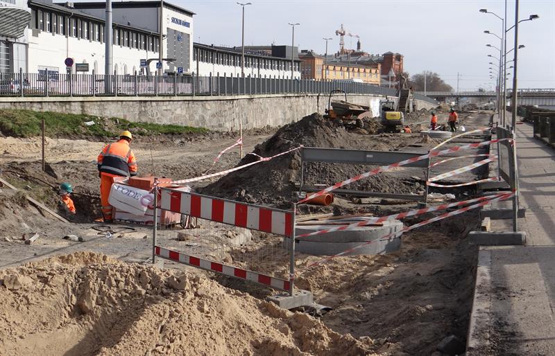 Prace przy przebudowie części przyodrzańskiej trasy do szczecińskich Pomorzan wyraźnie wyhamowały. Chodzi o rozkopane dotąd fragmenty ul. Krzysztofa Kolumba - te za dworcem, aż do stacji paliw Orlen u zbiegu ulic Nadodrzańskiej i Zapadłej, w których do tej pory rozebrane już zostały stare tory tramwajowe i miały ruszyć roboty ziemne przy układaniu nowych instalacji.