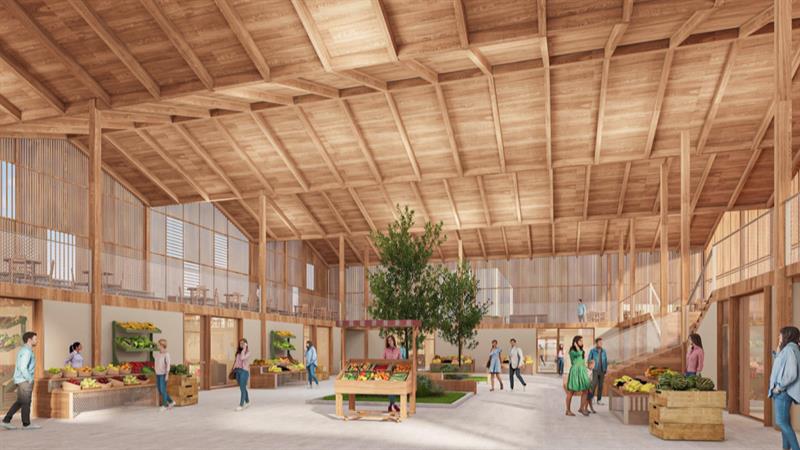 Projekt dość ładny ale niestety mało realny. Te drewno na dachu - kogoś tu poniosło, kogoś kto nie ma pojęcia ile takie konstrukcje kosztują. Sam dach kosztowałby majątek. Druga sprawa, to rozmieszczenie stanowisk handlowych na wizualizacji a w praktyce - tak jak to zostało przedstawione nie miałoby szans się utrzymać. Stanowisk musiałoby być co najmniej 3 razy więcej żeby ten obiekt utrzymać, a i tak czynsz musiałby znacznie wzrosnąć. Mówiąc krótko - pomysł fajny ale koszty realizacji kosmiczne