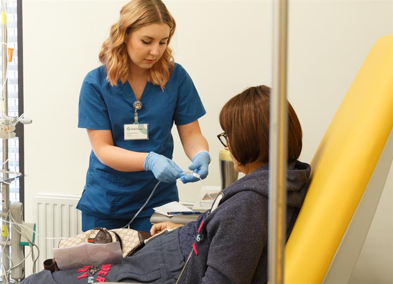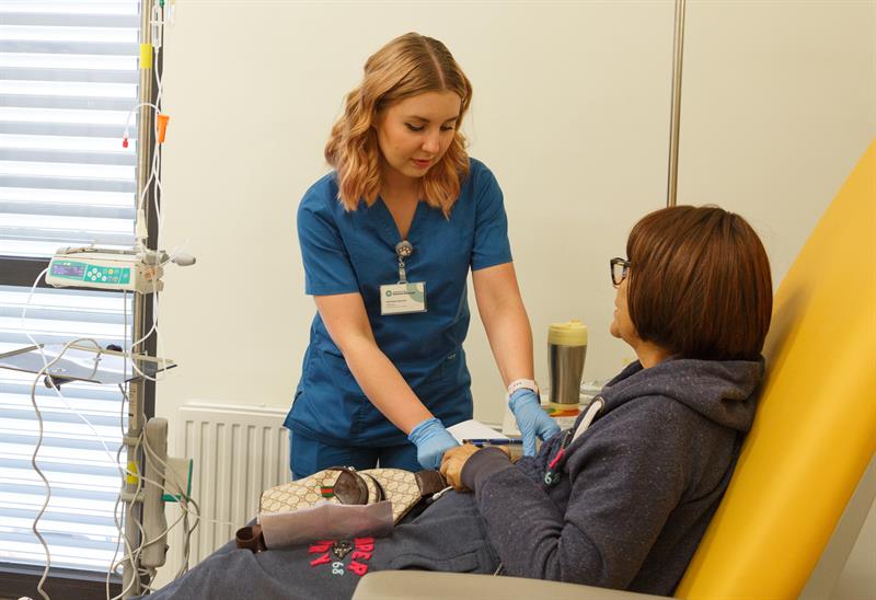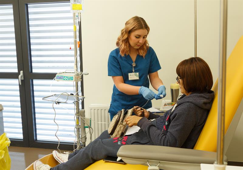 Zachodniopomorskie Centrum Onkologii przy ul. Strzałowskiej w Szczecinie podkreśla, że spełnia obowiązujące normy, jeśli chodzi o zatrudnienie pielęgniarek. Jednak kilka rekrutacji dla tej grupy zawodowej również ma w toku. Na zdjęciu praca pielęgniarki w Oddziale Dziennym Onkologii Klinicznej ZCO. Fot. Ryszard PAKIESER