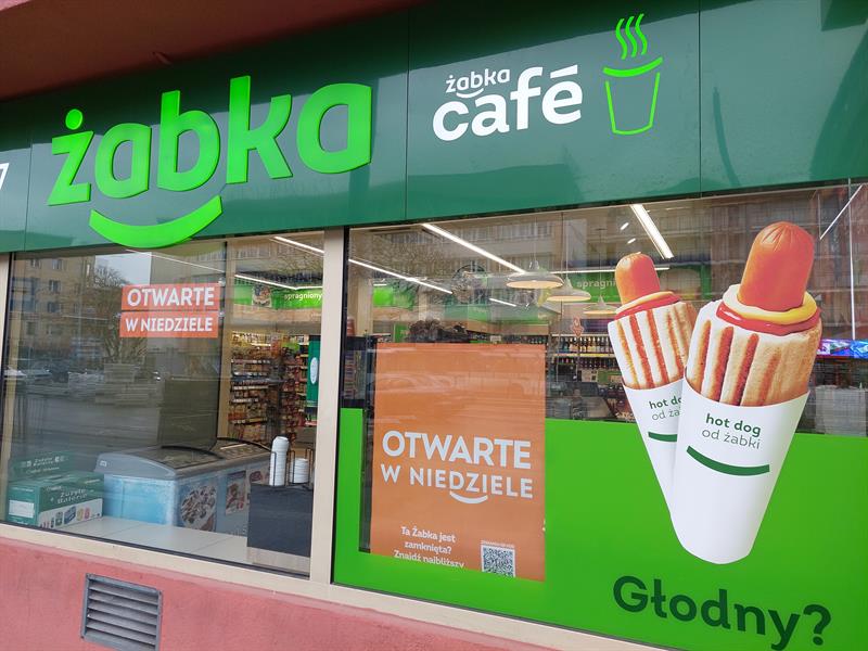 Niedziela 13. lutego - Żabka przy rynku na Pogodnie - sklep otwarty bo samoobsługa przy kasie.