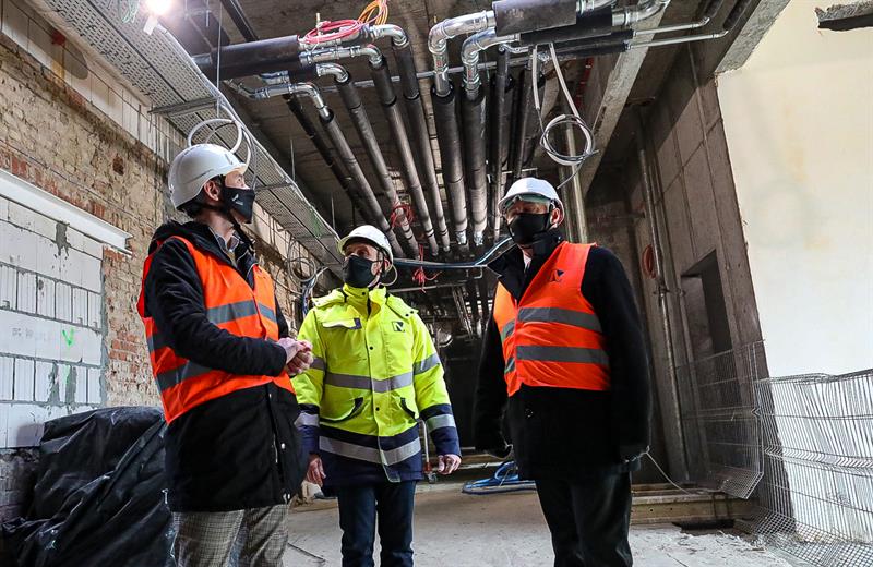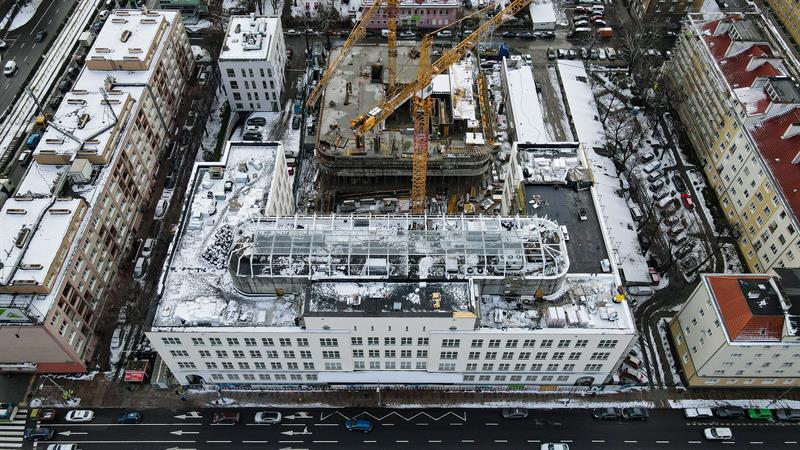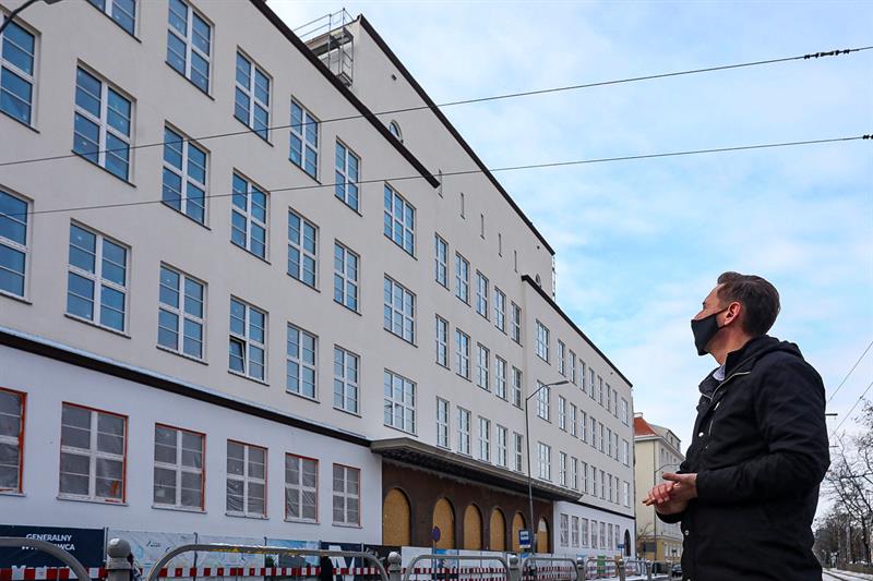 Gmach dawnej szkoły i przychodni przy al. Piłsudskiego ma już odnowiony front, wymienioną stolarkę okienną i ponad 80 proc. instalacji elektrycznych, wodno-kanalizacyjnych i wentylacyjnych. Działa nowy węzeł cieplny, aby budynek był ogrzewany w czasie prac. Dodatkowo setki regipsów pozwalają „odczytać" nowy układ pomieszczeń. Na pierwszym i drugim piętrze ścianki działowe są gotowe w 90 procentach. Trwa także tynkowanie, wylewanie posadzek oraz układanie płytek na korytarzach. Część pomieszczeń technicznych jest gotowa, rozpoczął się montaż urządzeń. Ogólne zaawansowanie prac w tym obiekcie zbliża się do 60 procent.
