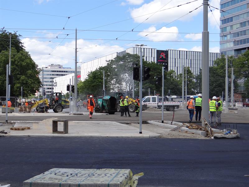 Na placu przebudowy torowisk i odcinków jezdni w obrębie pl. Rodła, w al. Wyzwolenia i al. Piłsudskiego w Szczecinie krajobraz zmienia się z dnia na dzień. Ciężki sprzęt do wylewania asfaltu i walce krążące po centrum oraz liczne zastępy robotników to znak, że ponowna reorganizacja ruchu w tym miejscu jest już blisko. Konkretnie od najbliższego czwartku 16 czerwca kierowcy pojadą remontowaną dotąd nitką al. Wyzwolenia od ul. Malczewskiego do pl. Żołnierza Polskiego. A nieprzejezdna stanie się dla odmiany ta w kierunku Niebuszewa.