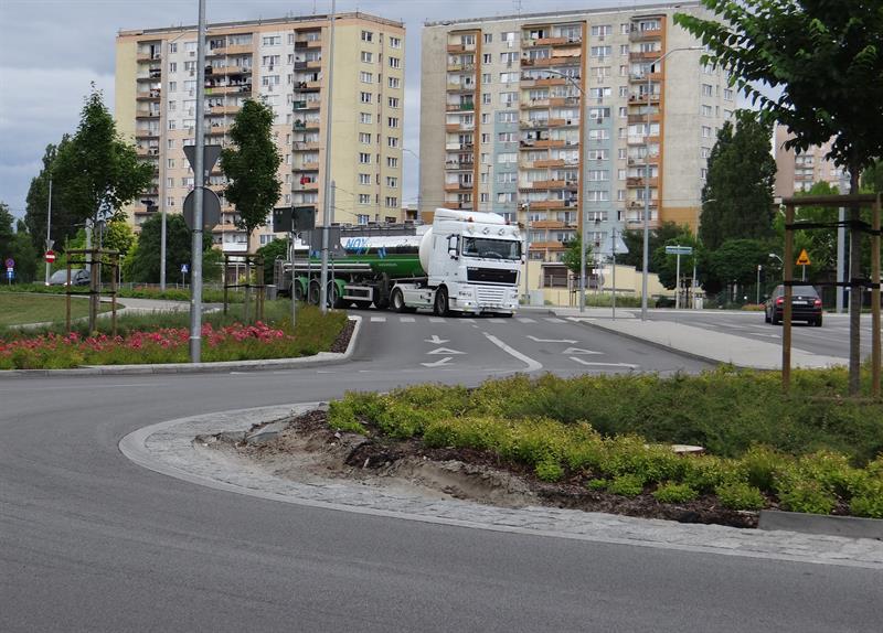 Tylko dlaczego tyle ciężarówek jeździ tym rondem? Przecież to ma być spokojna droga osiedlowa.