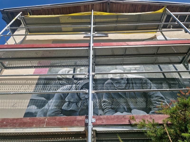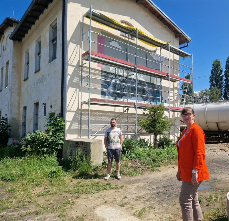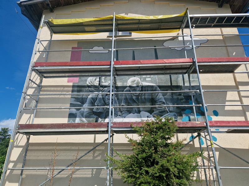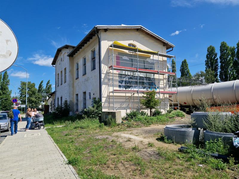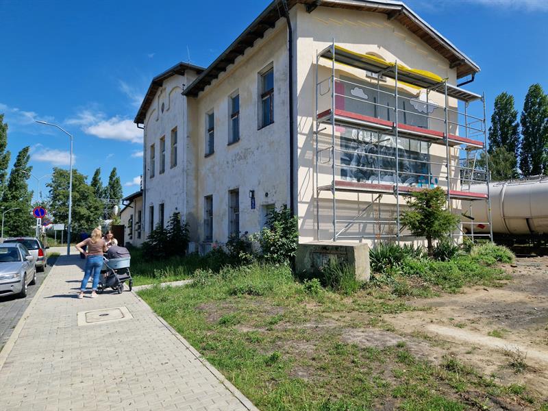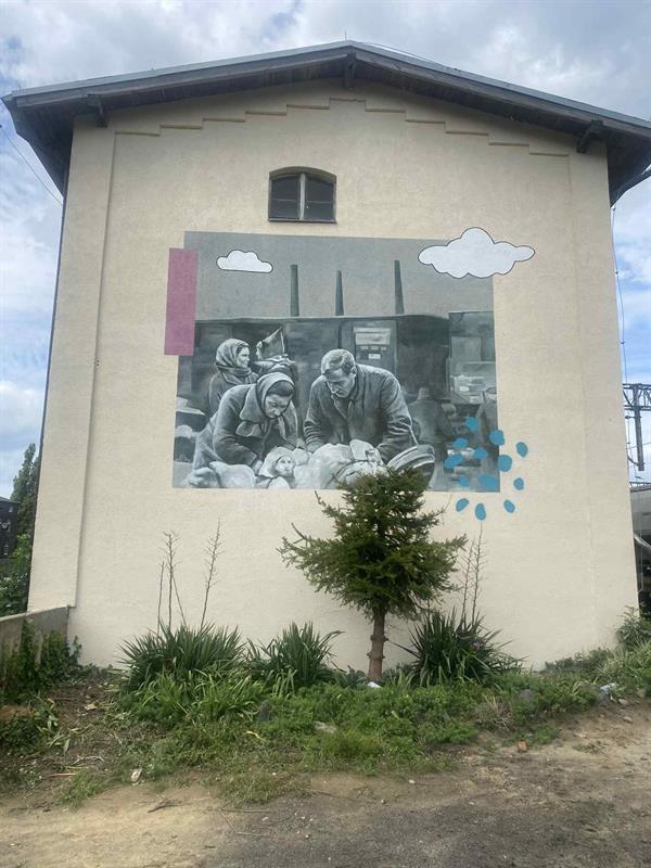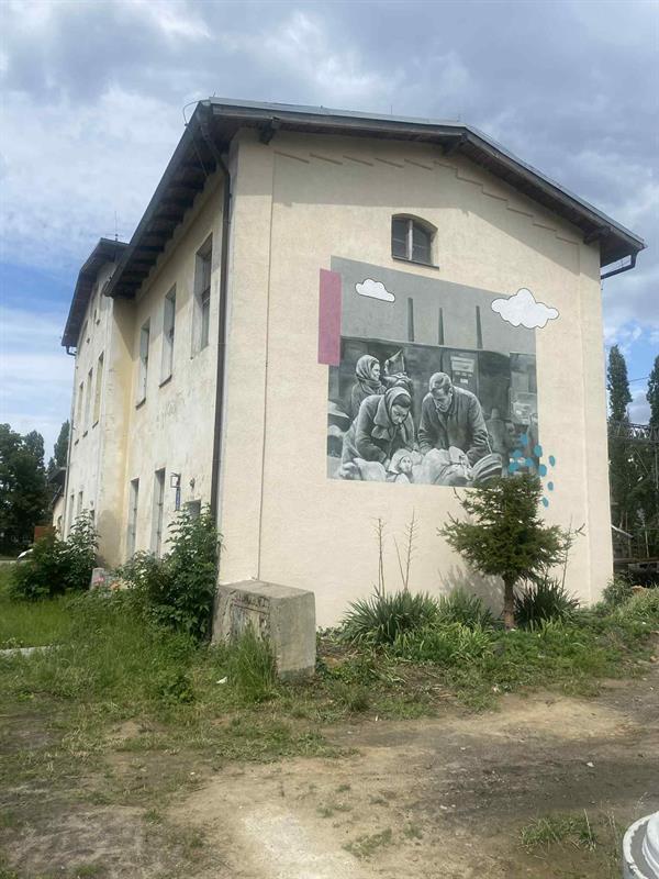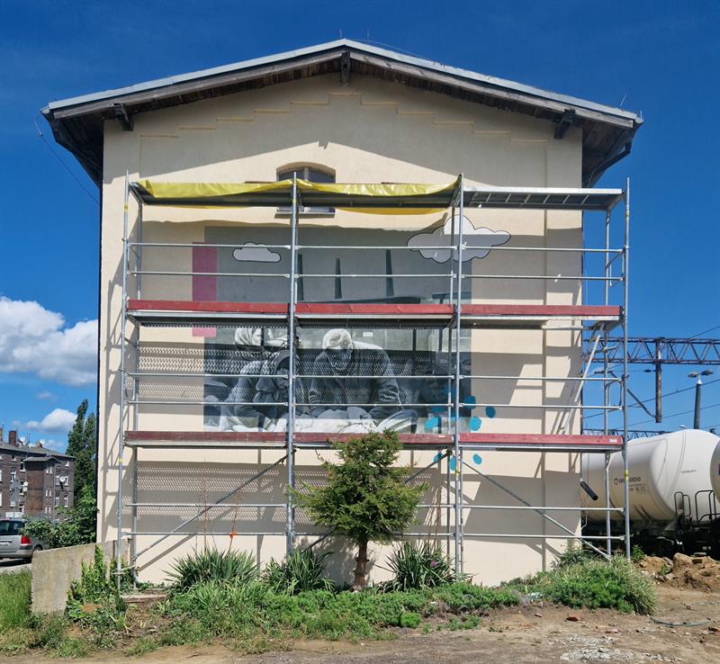 To kolaż trzech archiwalnych fotografii, który ma przypominać o pierwszych mieszkańcach powojennego, polskiego Stołczyna. Został namalowany na ścianie budynku dawnej stacji kolejowej - w miejscu, gdzie obecnie działa Izba Pamięci Stołczyna. Jak mówią autorzy muralu, ma on przede wszystkim opowiadać historię północnych dzielnic Szczecina po 1945 roku, ale również prowokować do refleksji i osobistych, rodzinnych opowieści. W środę 16 lipca zakończyły się ostatecznie prace nad projektem.