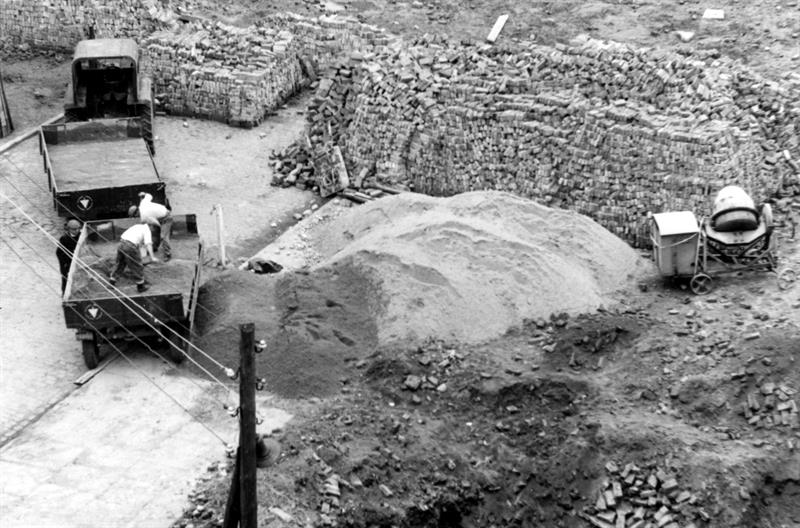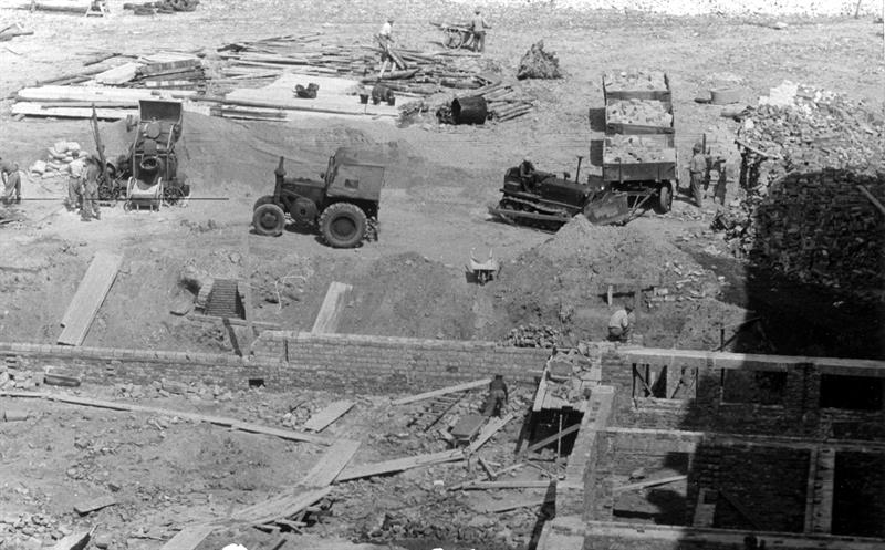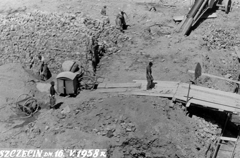 Budynek mieszczący się przy ówczesnej Bismarckstrasse 15 został zniszczony podczas jednego z dywanowych nalotów na Szczecin. Aż do końca lat 50. XX w. tym miejscu były tylko gruzy. W kwietniu 1958 roku rozpoczęto budowę szkoły. Cegły pozyskane z rozbiórki hali widowiskowej wykorzystano