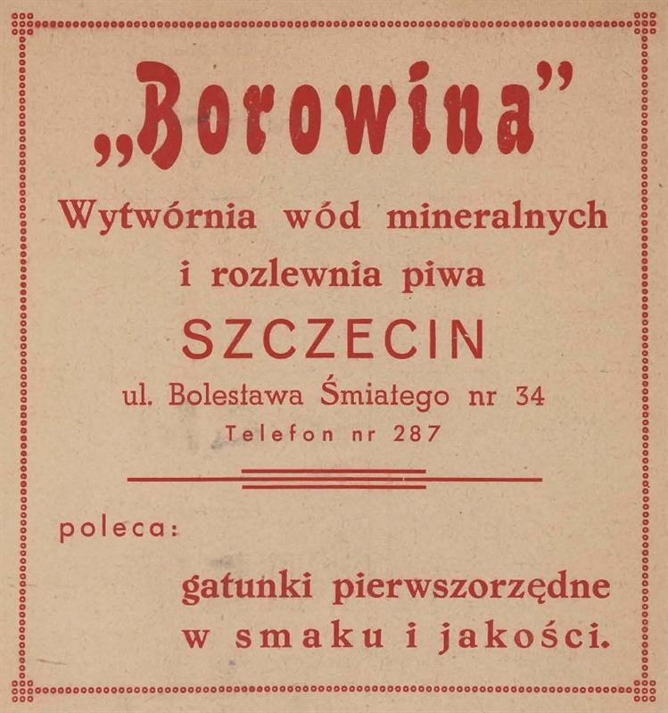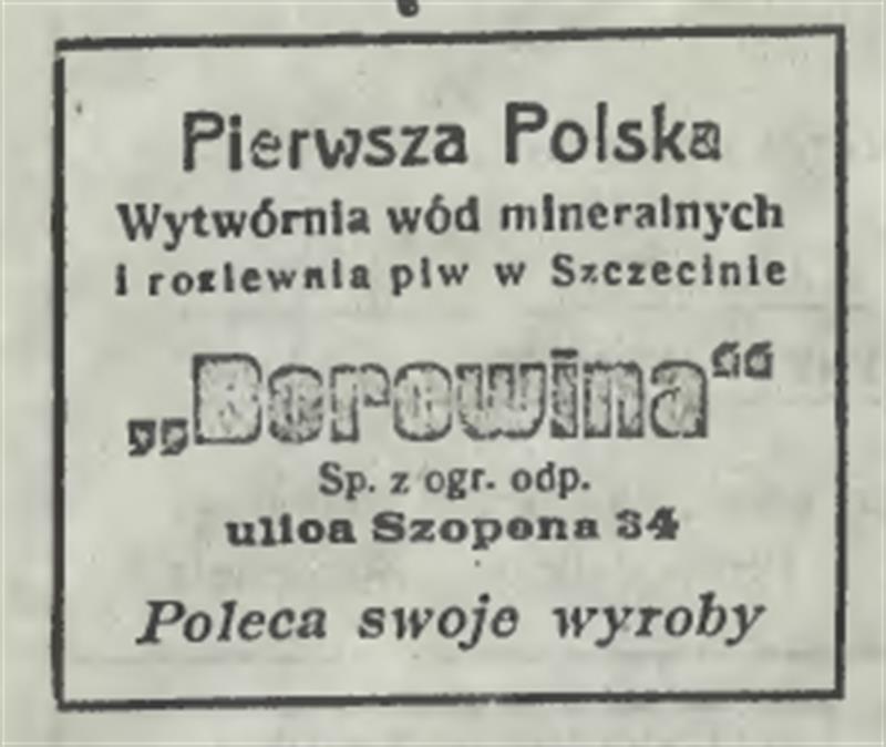 W lipcu 2025 roku przypadnie 80. rocznica przynależności Szczecina do Polski. Warto z tej okazji przypomnieć pewien mało znany fakt dotyczący rozwoju gospodarczego miasta. Okazuje się otóż, że pierwszą firmą, jaka zaczęła funkcjonować w zrujnowanym wojną Szczecinie była „Borowina", czyli… Wytwórnia Wód Mineralnych i Rozlewnia Piwa!