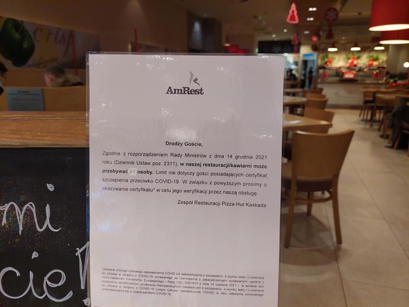 Śródmiejski lokal należący do tych z rodzaju fast food. Popularny, bo czynny całą dobę. Zawsze pełen ludzi. Na drzwiach co prawda naklejona kartka z informacją: „czekając w kolejce do kasy - max cztery osoby - prosimy zachować bezpieczną odległość od obsługi i oczekujących klientów", ale kolejka kilkunastu osób wije się tu podwójnie: wpierw trzeba zapłacić za jedzenie w kasie, potem odczekać na swoją porcję. Nikt tu paszportów covidowych nie sprawdza, ba, nawet nie pyta, czy po solidną porcję mięsa przyszedłeś ze szczepieniem, czy bez.