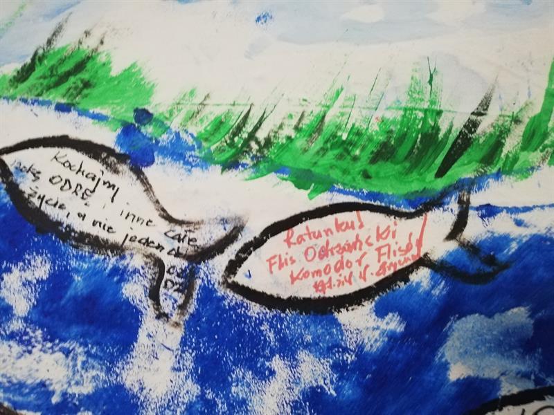 To spontaniczna akcja wymyślona przez pracowników Centrum Kultury Euroregionu Stara Rzeźnia w Szczecinie. W jeden dzień powstał sporej wielkości mural, który przedstawia ryby i życie w Odrze. Goście Starej Rzeźni podczas imprezy Żagle 2022 mogli uzupełnić jedną z „rybek" pozytywnym hasłem, myślą lub refleksją. Mural przygotowała Kamila Maślak.