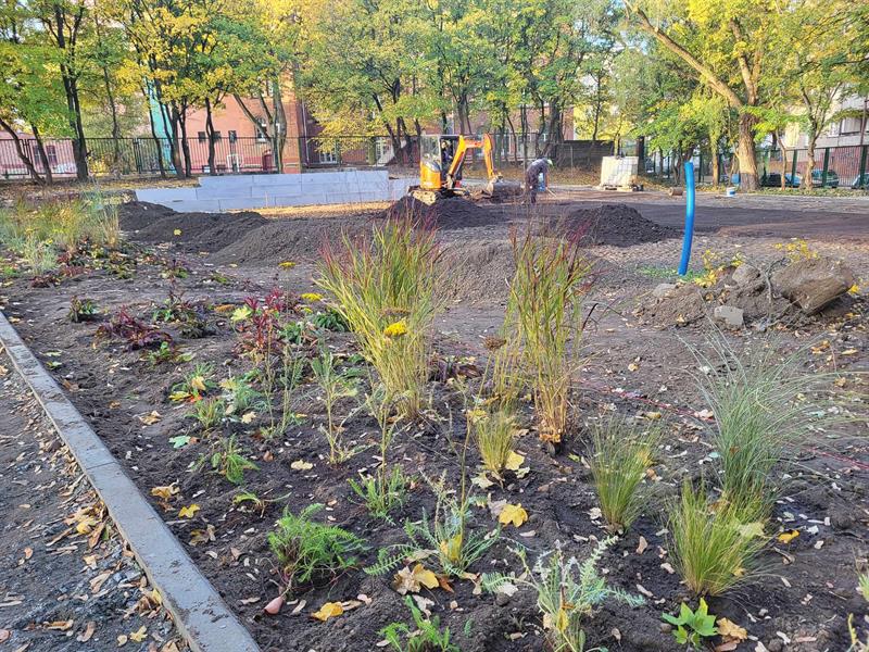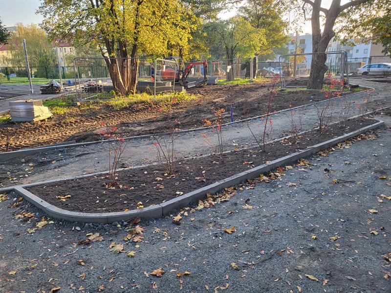 - Pogoda sprzyja także pracom ogrodniczym, więc wykonawca rozpoczął sadzenie roślin i zakładanie trawników w miejscach, w których już nie będą