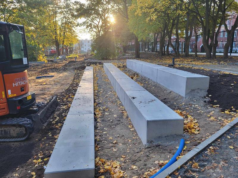 - Wykonawca wytyczył i częściowo wykonał już ścieżki w parku. Rozpoczęła się też budowa podestów pod zieloną szkołę. Zamontowano duże betonowe bloki, które zostały wbudowane w skarpę i posłużą jako siedziska terenowe - mówi Marta Safader-Domańska, ogrodniczka miasta.