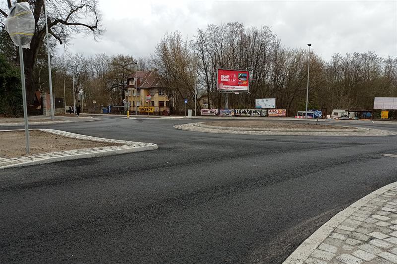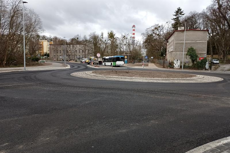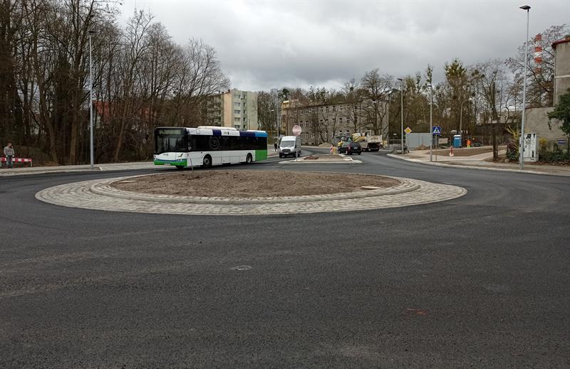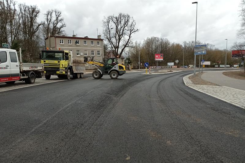 W miniony piątek w rejonie zbudowanego ronda i na jego poboczach trwały wciąż prace porządkowe. Do słupów mocowane były pionowe znaki drogowe i ustawiane w rejonie dojazdów