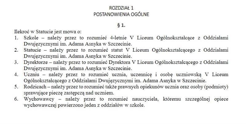 Przypomnijmy, w znowelizowanym od 1 września 2024 r. Statucie V LO pojawiło się sformułowanie osoba uczniowska. Dokładnie mówi to tym paragraf I punkt 4, który brzmi: „Ilekroć w Statucie jest mowa o uczniu - należy przez to rozumieć ucznia, uczennicę i osobę uczniowską V Liceum Ogólnokształcącego z Oddziałami Dwujęzycznymi im. Adama Asnyka w Szczecinie".