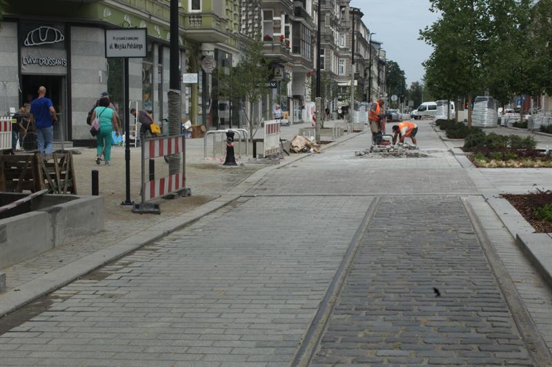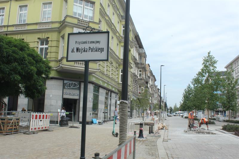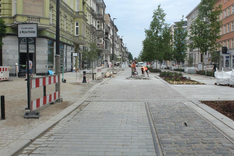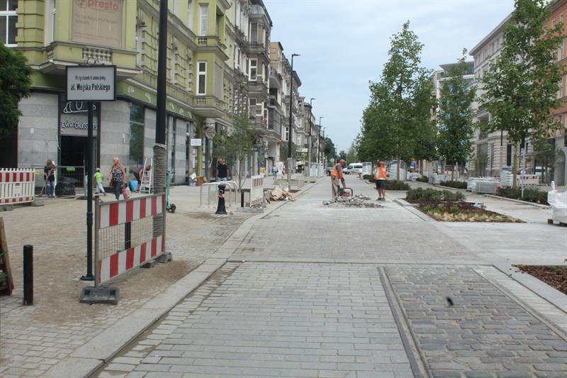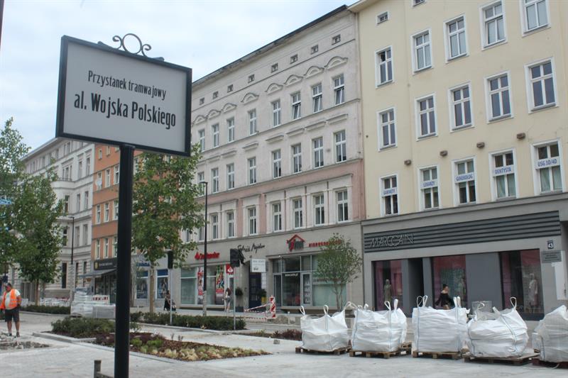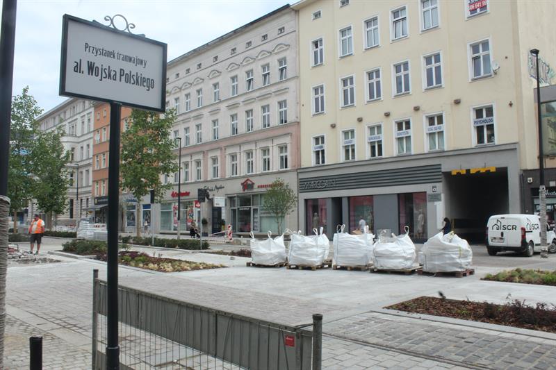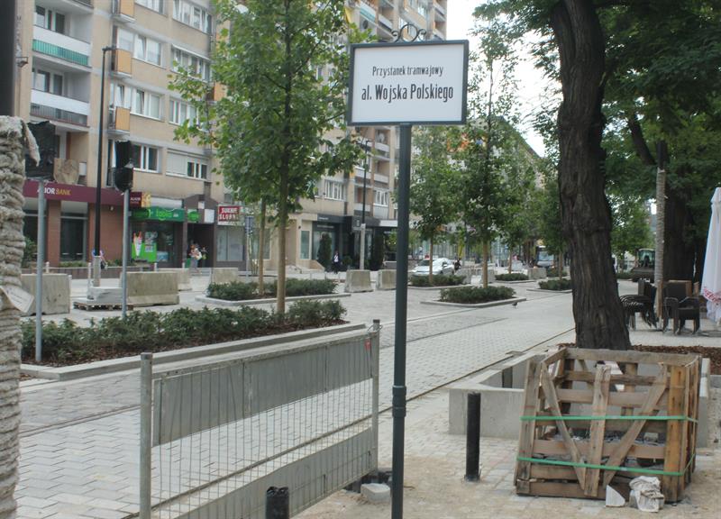 Zasadnicze prace budowlane w al. Wojska Polskiego są zakończone. Trwa budowa fontanny i realizowane są prace wykończeniowe. Przywrócenie ruchu to prawdopodobnie kwestia kilkunastu dni, ale dokładny termin nie jest jeszcze znany.
