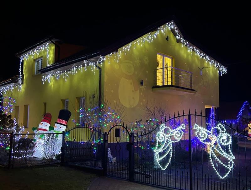 Dom i ogród państwa Rosów przed Bożym Narodzeniem podobnie jak przed rokiem rozświetliły tysiące lampek, światełek, lampionów i girland, zmieniając je w prawdziwą krainę świątecznych cudów. Ozdoby stoją w ogrodzie lub wiszą na drzewach i krzewach oraz wzdłuż dachu. Nie brakuje tam figur reniferów, bałwanów czy świętych Mikołajów. Ozdobione są też ogrodowe rzeźby, stara studnia czy maszyny rolnicze. Na ogrodzeniu od strony ulicy miga wielki napis Wesołych Świąt! Dwa nadmuchane bałwany kołyszą się na wietrze. Właściciele zadbali też o animacje na ścianach budynku, na którym można obserwować Mikołaja w saniach ciągniętych przez renifery czy ruszającego się bałwana.
