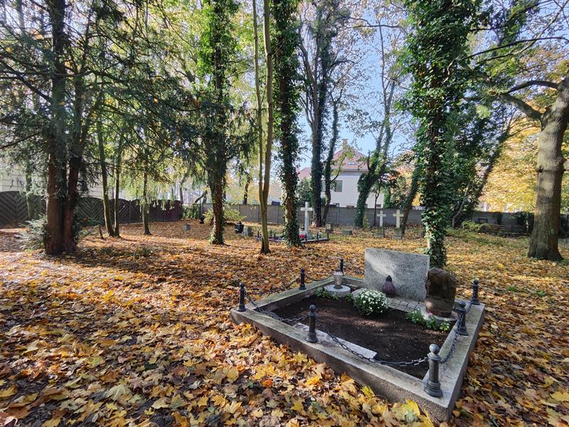 Ocalałe fragmenty pomników nagrobnych ustawiono w formie minilapidarium, symbolicznie porządkując przyległy teren.