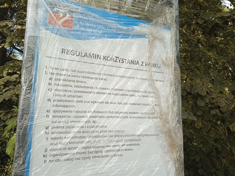 Przebudową jest objęty teren, który w przyszłości będzie sąsiadował z przystankiem „Żelechowa" Szczecińskiej Kolei Metropolitalnej. Właśnie przez park - od strony ul. Obotryckiej i Bogumińskiej - będzie prowadził skrót ku nowemu przystankowi SKM-ki. Stąd główny trakt na rewitalizowanym terenie nie został pokryty naturalnym kruszywem: aby ułatwić przejazd rowerzystom, a piesi nie musieli brnąć w nasiąkającej wodą nawierzchni. Problem w tym, że właśnie zamontowany regulamin parku…