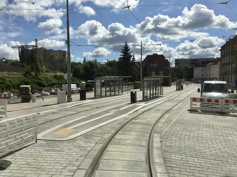 Od nieco ponad tygodnia do nowej pętli na ul. Orzeszkowej w Szczecinie znów zajeżdżają tramwaje. Na razie tylko kadłubowej linii 3, której do tego właśnie miejsca wydłużono trasę z pętli na osiedlu Zawadzkiego-Klonowica. I to jedyna w tej okolicy, jak na razie, zmiana dla pasażerów komunikacji miejskiej. Z kolei dla samochodów przejezdne są ulice Kołłątaja wraz z rondem Sybiraków i częściowo tylko ul. Asnyka, bo do skrzyżowania z ul. Boguchwały. Nie zmienia to faktu, że okolica pętli to wciąż plac budowy i zanosi się, że ukończenie prac drogowcom z ZUE i spółek podwykonawczych zajmie tam jeszcze co najmniej kilka tygodni.