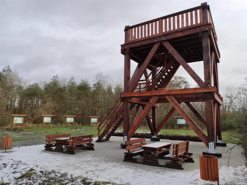 Na nową wieżę czekano od dawna. Poprzednia uległa zniszczeniu i przez dłuższy czas na szlaku nie było żadnego punktu widokowego. Nadleśnictwo Międzyzdroje obiecało, że wieża zostanie odbudowana i tak też się stało. Budowlę postawiono w tym samym miejscu co poprzednio (na polanie przy wyjściu z lasu). Jedynym mankamentem wieży jest brak zadaszenia (poprzednia takowe miała), ale za to jest niemal dwukrotnie wyższa od swojej poprzedniczki. Podczas inwestycji zagospodarowano i odnowiono również otoczenie całej polany. Postawiono nowe