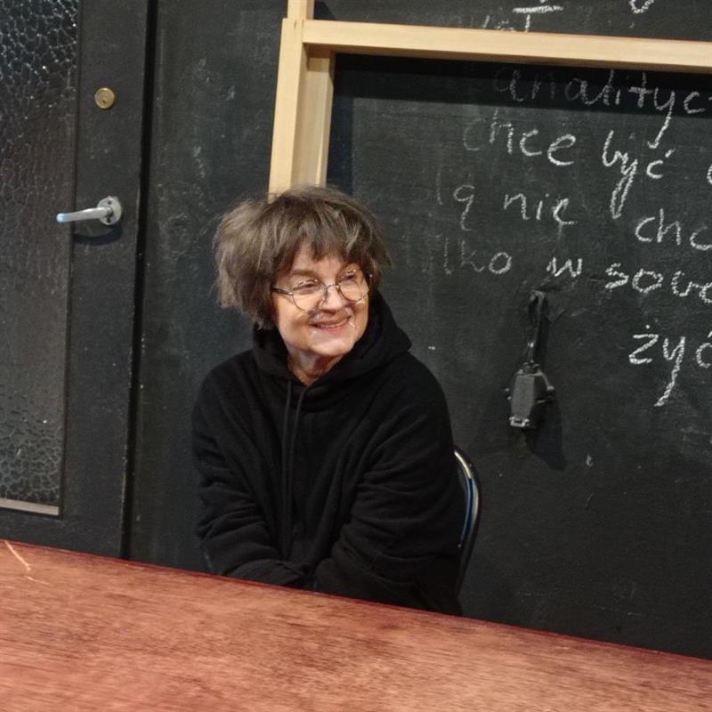 - Dostałam w prezencie książkę, bardzo pięknie wydaną, pod tytułem „Odlot" autorstwa Zenona Fajfera. Jest to popis kunsztu edytorskiego. Natomiast ja chciałam spróbować, jak ten tekst wytrzymuje próbę teatru. On jest utworem afabularnym, czymś, co pokazuje, w jaki sposób zaczyna się katastrofa społeczna, która trwa. W tym locie nierealnym