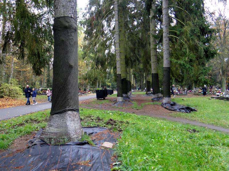 ‘Wyniszczone I chore na skutek suszy i smogu - sami je niszczymy pozwalając rozjeżdżać cmentarz samochodami