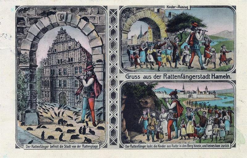 Wilhelm Karl Grimm i Jacob Ludwig Karl Grimm przede wszystkim byli językoznawcami i badali podania, mity i opowieści ludowe. To właśnie w oparciu o nie spisali swoje „Baśnie braci Grimm". Jedno z najbardziej znanych na świecie podań opowiada o wydarzeniu z 1284 roku. Wówczas to do miasta Hameln nad Wezerą przybył pewien mężczyzna. Miał na sobie dziwny, pstrokaty ubiór. Rychło dowiedział się, że plagą grodu są gryzonie, z którymi mieszczanie nie potrafili sobie sami poradzić. Złożył im więc ofertę uwolnienia miasta od wszystkich myszy i szczurów. W zamian zażądał zapłaty. Mieszczanie zgodzili się na to tym chętniej, że zwierzęta zjadały im zboże tak potrzebne do wyrobu mąki, z której pieczono chleb.