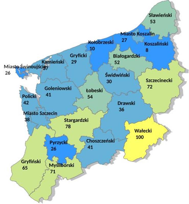 W samym Szczecinie zarejestrowanych jest 38 osób, w powiecie polickim - 42 Ukraińców szuka pracy przez pośredniak. Najwięcej, bo 100 osób bezrobotnych dokonało rejestracji w powiecie wałeckim, 78 - w stargardzkim, 72 - w szczecineckim, 71 - w myśliborskim. Cudzoziemcy zza naszej wschodniej granicy zarejestrowali się jako osoby bezrobotne lub poszukujące pracy także w powiecie kamieńskim - tu chce się zatrudnić przez pośredniak 87 Ukraińców. Świnoujski urząd pracy przyjął zgłoszenia od 26 obywateli Ukrainy, PUP w Koszalinie także od 26, jednak w samym powiecie koszalińskim zarejestrowało się 8 uchodźców.