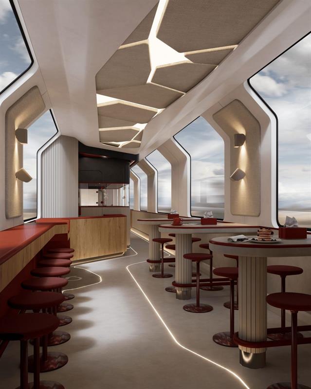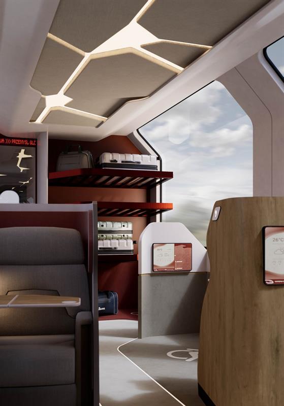 W swojej pracy Julia Rapacz wzorowała się na wnętrzach samolotów, także prywatnych odrzutowców. Wyszła z założenia, że pociąg służy czemuś więcej niż tylko przemieszczaniu się. Podróż ma być atrakcją samą w sobie.