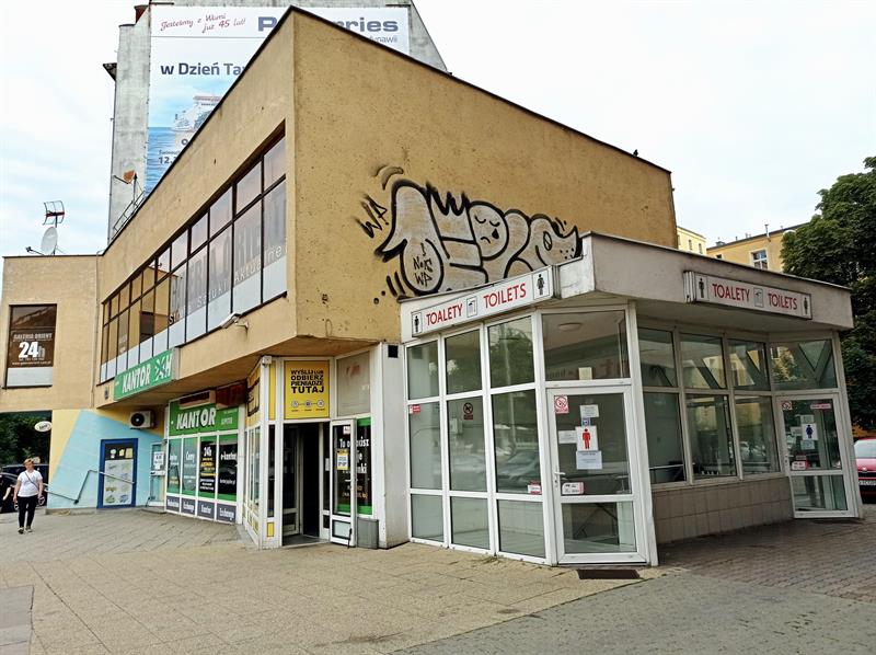 Miejski szalet z prysznicami na wprost pl. Adamowicza (formalnie al. Papieża Jana Pawła II nr 1) będzie funkcjonował tylko do końca sierpnia. Zapadła decyzja o jego zamknięciu. Fot. Mirosław WINCONEK