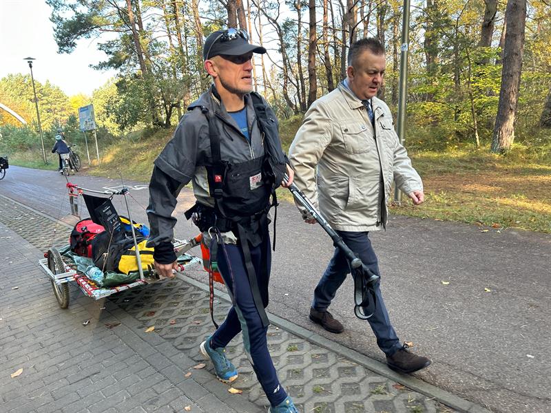 Michał Kiełbasiński wyruszył w niedzielę, 13 października o godzinie 16.30 w Piaskach, ostatniej polskiej miejscowości na Mierzei Wiślanej, oddalonej 4 km od