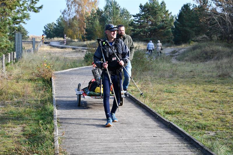 Michał Kiełbasiński, zawodnik specjalizujący się w ekstremalnych zawodach Adventure Racing i ultramaratonach, na własnej skórze, a raczej na nogach sprawdził długość morskiej linii brzegowej. Pokonał ją w 12 dni, ciągnąc za sobą samodzielnie skonstruowany wózek.
