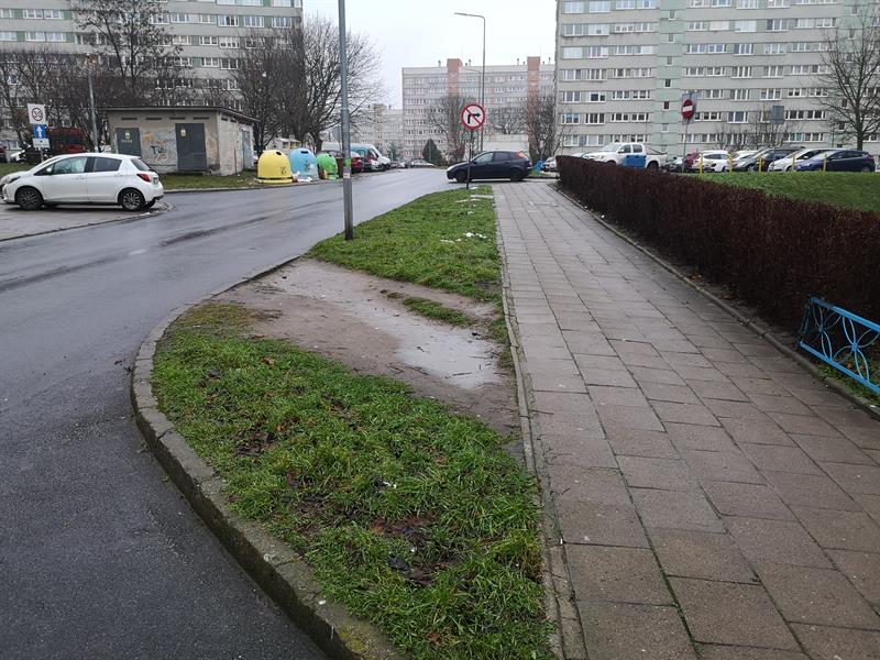 Szczególnie dziś po opadach śniegu widać doskonale wydeptane ślady przez lokatorów, którzy nie mają innej drogi, by przejść na drugą stronę ulicy. Trawnik i chodnik są częścią gminnego pasa drogowego, ale urzędnicy jakoś do niego się nie przyznają. Na ten temat piszę od kilku lat i cisza. Mieszkańcy i dzieci udające się do pobliskiej szkoły muszą uważać na samochody, które niekiedy jadą dość szybko. Jeden z urzędników stwierdził w piśmie do redakcji, że jest to strefa ruchu, więc nie ma potrzeby malowania na jezdni przejść dla pieszych. Tyle że nie zauważył, że żadnego znaku o tym informującego nigdzie nie ma. Nie ma także żadnych przejść dla pieszych, bo skoro jest strefa 30, to takowe są niepotrzebne - to tłumaczenie urzędników.