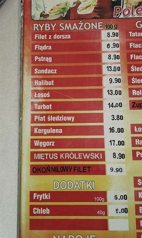 Przed większością nadmorskich smażalni wywieszony jest cennik i każdy może dopasować zakup do swoich możliwości.