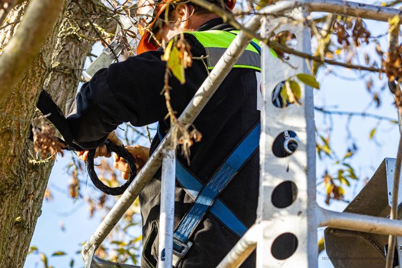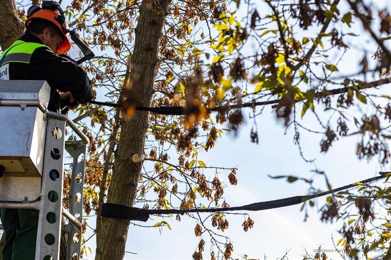 - Wykonywane jest odeskowanie pni i w niedługim czasie wyznaczone zostaną również strefy ochrony drzew - informuje Piotr Zieliński, rzecznik prasowy miasta ds. inwestycji. - Zabiegom pielęgnacyjnym z kolei został poddany klon jesionolistny rosnący w pasie od strony ul. Sczanieckiej. Prace w koronie tego okazu objęły m.in. usunięcie posuszu, gałęzi krzyżujących się. Drzewo przeszło już cięcia formujące oraz z uwagi na fakt, że ma wiele pni założono dwa wiązania elastyczne typu ‚Cobra’ 4t. Dzięki zabiegom drzewo zachowa żywotność i nie będzie zagrażać prowadzeniu prac