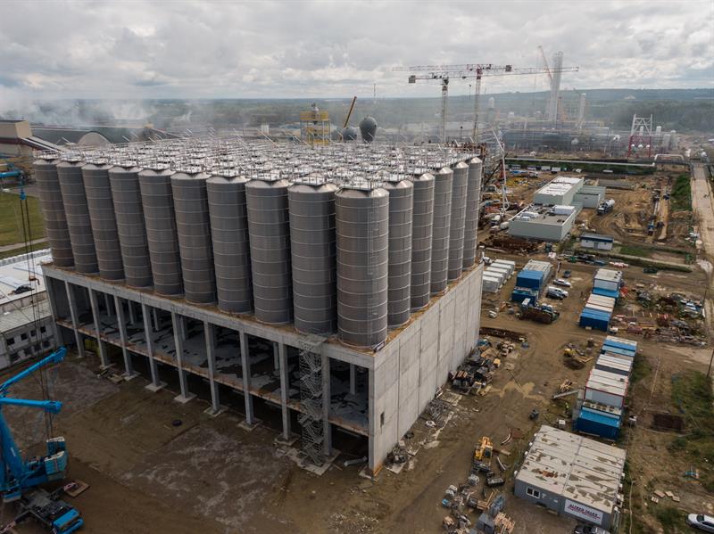 Po zakończeniu montażu tych zbiorników budowana wytwórnia tworzyw sztucznych osiągnęła już 71,55 procent zaawansowania. Fot. Grupa Azoty