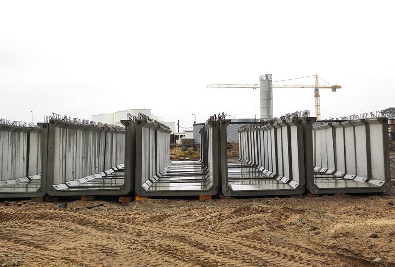 - Proces powstawania prefabrykatów można podzielić na kilka etapów - wyjaśnia Jacek Król, inżynier z konsorcjum SWECO/Lafrentz, które prowadzi nadzór nad inwestycją. - To przede wszystkim przygotowanie form: czyszczenie, spryskanie środkami antyadhezyjnymi, które zapobiegają przywieraniu świeżego betonu do form, a następnie montaż akcesoriów. Następnie przygotowane wcześniej kosze zbrojeniowe są wkładane do tych form przy pomocy suwnicy, a potem zalewane betonem. Dalej, w trakcie dojrzewania betonu, prefabrykaty są poddawane obróbce cieplnej. Rozformowane elementy są układane na placach składowych w pozycji gotowej do ich transportu.