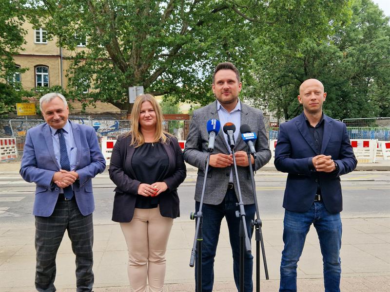 Radni zwołali w piątek konferencję prasową - dokładnie w miejscu, gdzie trwają wciąż prace drogowe na al. Powstańców Wielkopolskich, w okolicy szpitala na Pomorzanach. Nie kryli oburzenia informacją o tym, że remont ulicy potrwa jeszcze kolejne dwanaście miesięcy.