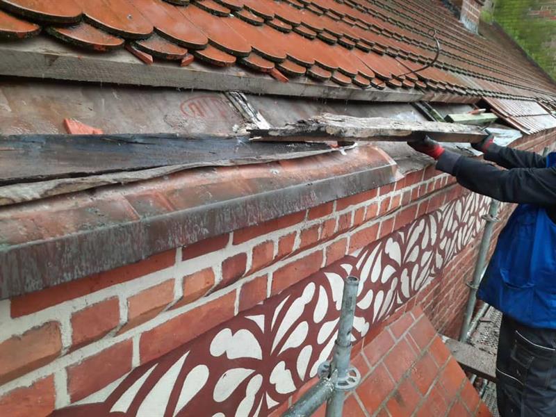 - Te roboty nie zostały wykonane zgodnie ze sztuką obróbek blacharskich - opowiada Janusz Posadzy. - Łaty były zbijane z kawałków drewna, a następnie pokrywano to dachówką. Wykonawca chciał zaoszczędzić na materiale. Przez to woda wnikała w szpary i to wszystko pogniło. Dziś to wszystko trzeba remontować na nowo. Dach od strony muzeum przecieka. Wymaga pilnego remontu. Słów