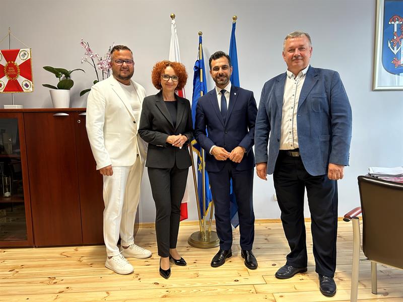 Joanna Agatowska, prezydent Świnoujscia, Shivan Fate, starosta policki i Jarosław Burba, burmistrz Nowego Warpna. Po lewej stronie, w białym garniturze – Arkadiusz Mazepa, wiceprezydent Świnoujścia. Fot. UM Świnoujście
