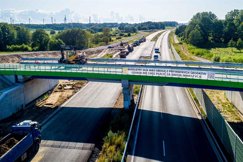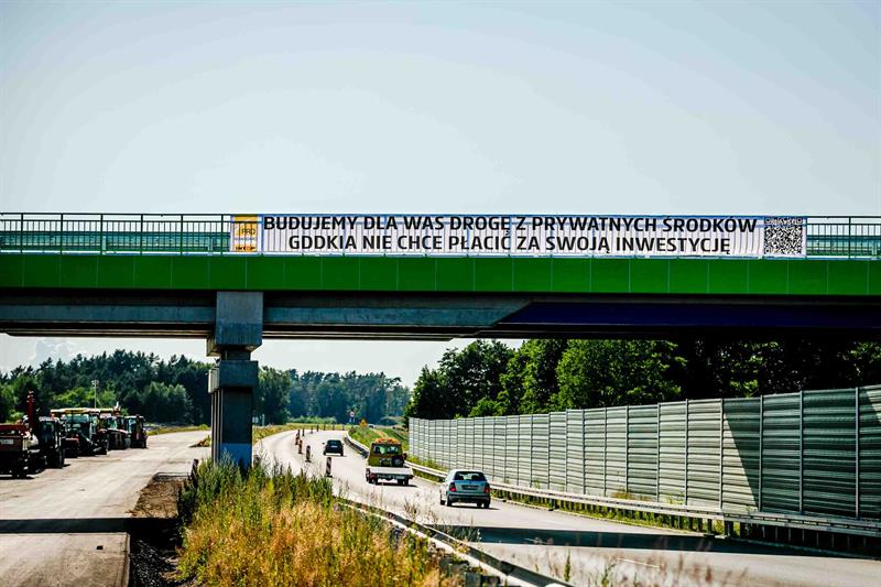 „Budujemy dla Was drogę z prywatnych środków. GDDKiA nie chce płacić za swoją inwestycję" - baner o takiej treści zawisł w czwartek (10 lipca) nad drogą S3 w okolicy Wolina. PRD Nowogard SA, lider konsorcjum budującego około 16-kilometrowy odcinek Dargobądz-Troszyn, protestuje w ten sposób przeciwko działaniu strony rządowej, która od trzech lat odwleka decyzję o pokryciu niemożliwych do przewidzenia wzrostu kosztów inwestycji. Na temat tego konfliktu pisaliśmy pod koniec czerwca bieżącego roku.