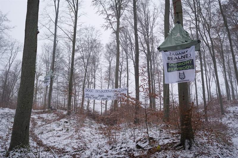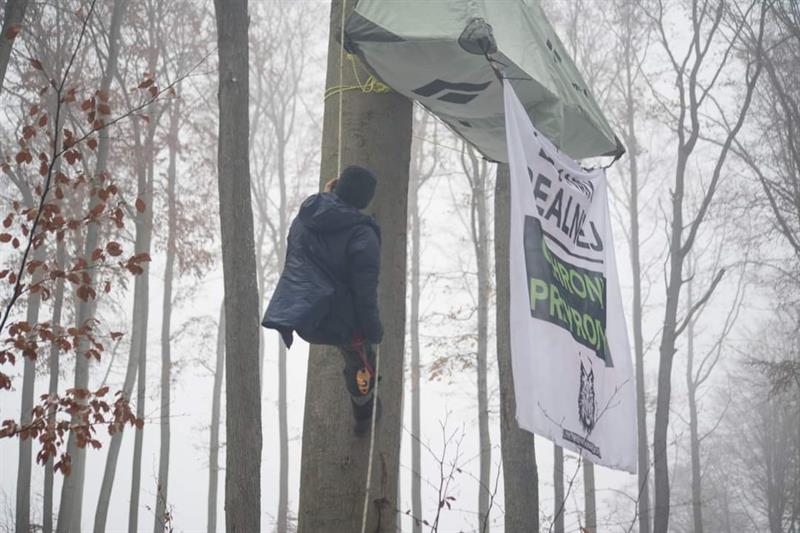 Dziki Ruch Oporu pojawia się wszędzie tam, gdzie jest niszczony szczególnie cenny drzewostan leśny, prowadzone wyręby na masową skalę. Jego aktywiści organizują protesty i blokady przeciwko wycince drzew. Tym razem rozbili obóz w Puszczy Bukowej.