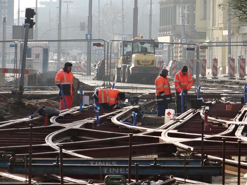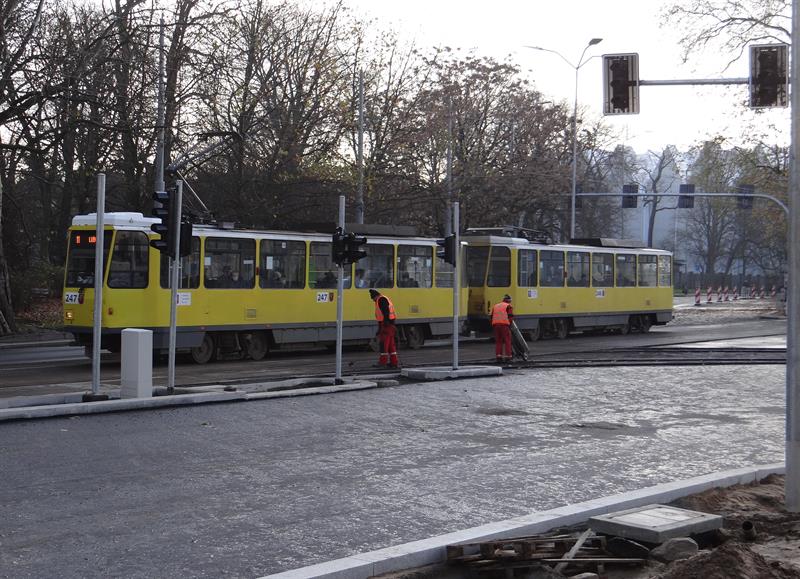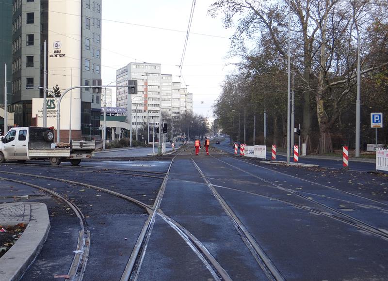 Natomiast zakończone zostały wcześniej już prace przy zalewaniu asfaltem torów w al. Marszałka Józefa Piłsudskiego między pl. Rodła i skrzyżowaniem z ul. Jana Matejki. Od strony tej ostatniej kończą się prace na wyłączonym z ruchu odcinku jezdni od