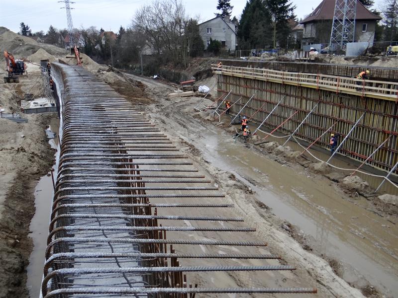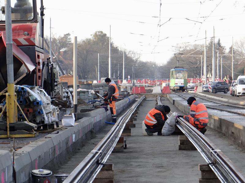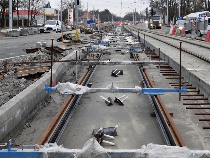 Po rozbiórce starej infrastruktury i wykonaniu podbudów układane są tory tramwajowe w al. Wojska Polskiego. Przygotowywane są do zabetonowania na odcinku w kierunku centrum od wysokości nowego wiaduktu do skrzyżowania z ul. Bohdana Zaleskiego, a na tym od skrzyżowania ulic