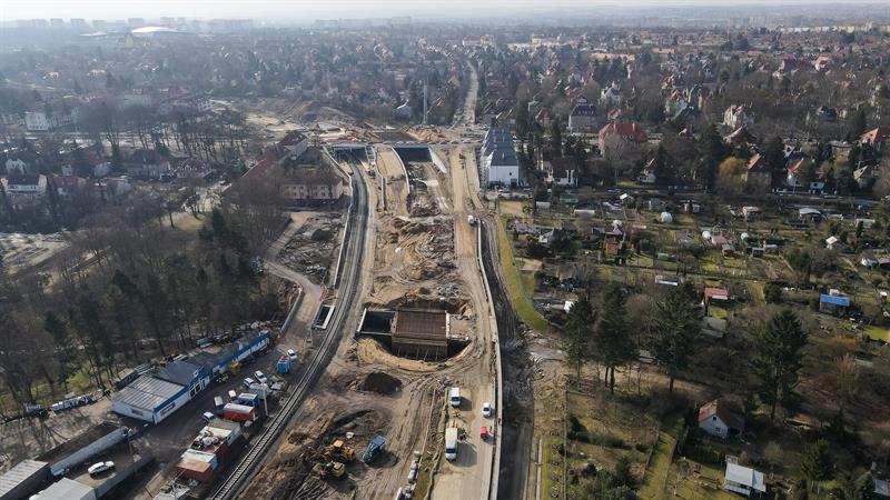 Na dokończenie czeka magistrala kolejowa. Po ułożeniu na nowym nasypie jednego toru, który umożliwia ruch pociągów, do tej pory ułożony został jedynie krótki fragment drugiego toru na wysokości nowego przejazdu
