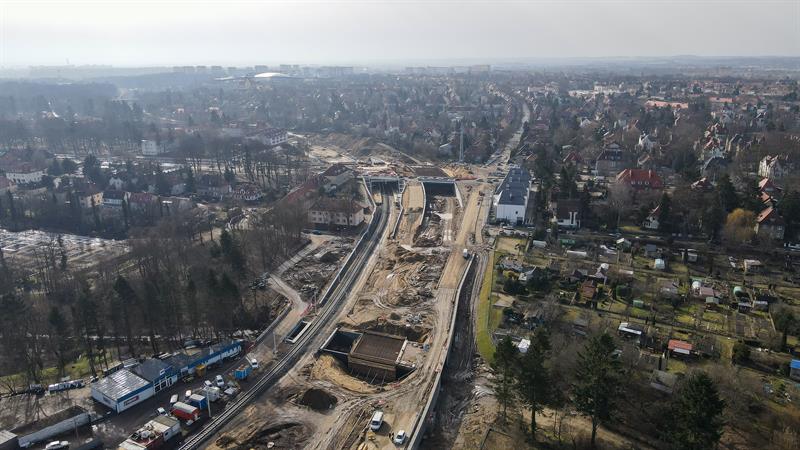 Po lutowym ataku zimy z silnymi mrozami i opadami śniegu, po którym już ani śladu, aura znów sprzyja drogowcom. Wraz z odwilżą i temperaturami od kilku dni powyżej 10 stopni Celsjusza na placu inwestycji widać większy niż wcześniej ruch. Zwłaszcza w rejonie ostatniego ze wznoszonych tam teraz wiaduktów.