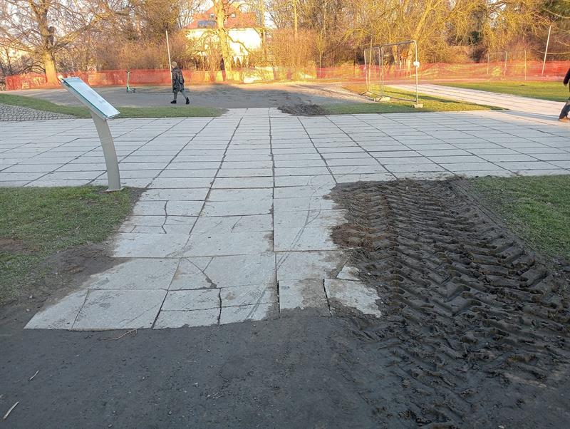 „Wjechali ciężkim sprzętem w otoczenie Pomnika Czynu Polaków. Mogli przejechać koparką po gołej ziemi, niczego wokół nie niszcząc. Wybrali jednak najgorszą wersję z możliwych - gąsienice koparki przejechały po ułożonych płytach paradnego chodnika, łamiąc je i zmieniając w budowlany odpad. Czy tak powinno się prowadzić rewitalizację jednego z najbardziej reprezentacyjnych miejsc Szczecina? - alarmuje nasz Czytelnik.